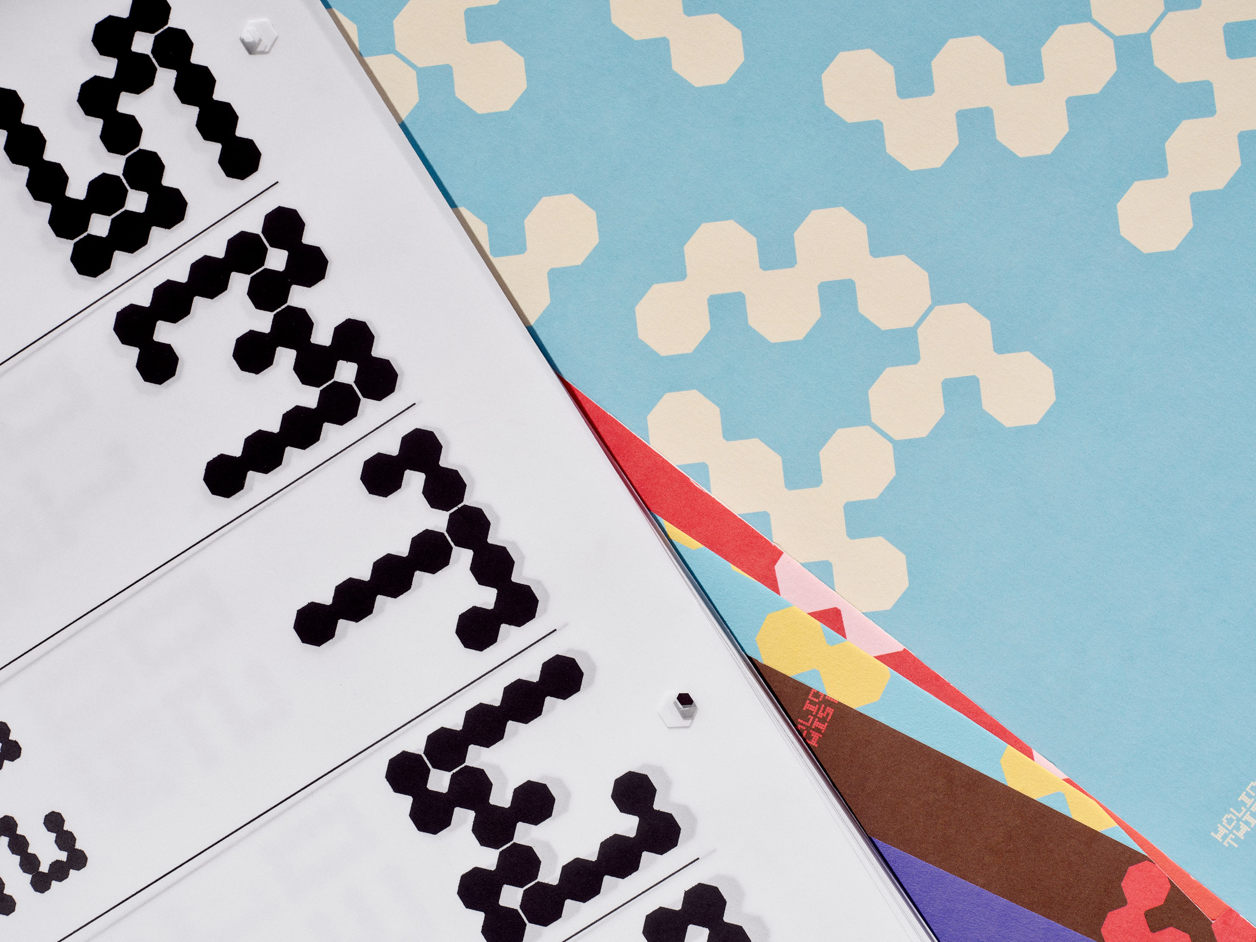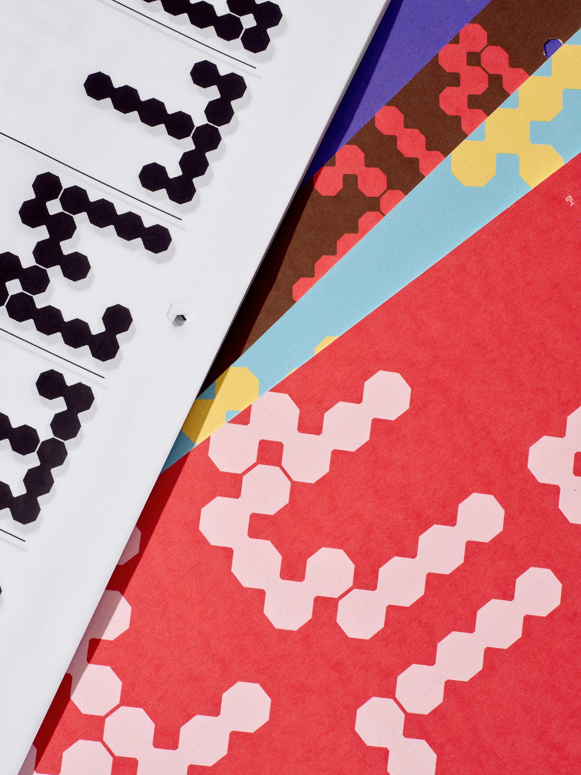 The modular typeface was created with the pieces from the board game Kanoodle. Each letter was built entirely from those game pieces, with two constraints guiding every decision: no piece could be used more than once per letter, and every letterform had to fit within the game's 5×5 grid.