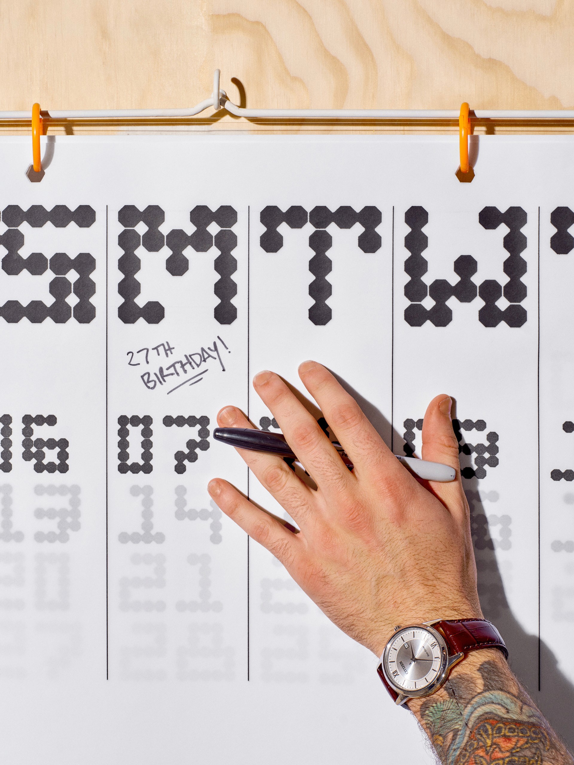 Everything in this calendar was made from scratch, by hand. From the custom-cut acrylic backing and metal hanging bar, down to the octagon hole punches. No detail was too small to consider, and no shortcuts were taken. The result is something that couldn't exist any other way: entirely original, entirely intentional, and made to last well beyond the year it carries.